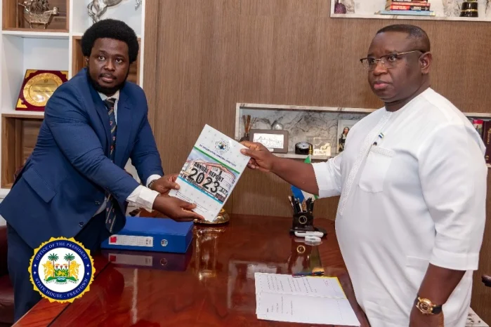 His Excellency President Dr. Julius Maada Bio has formally received the Anti-Corruption Commission’s 2024 Annual Report, commending the Commission’s leadership and staff for their ongoing efforts in advancing Sierra Leone’s fight against corruption. This marks the seventh consecutive year the ACC has submitted its annual report to the President, as mandated by the Anti-Corruption Act of 2002.